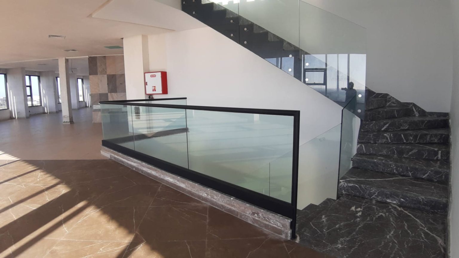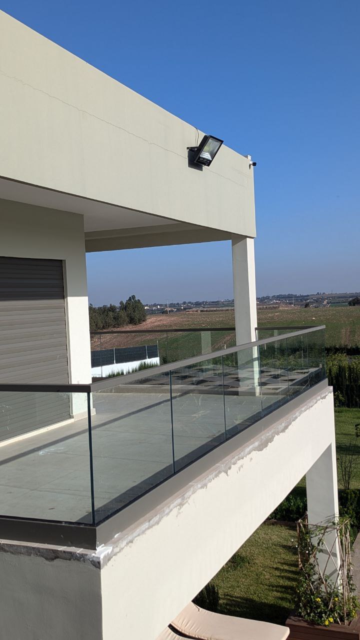 The NERO aluminum railing system, available in Casablanca, is distinguished by its modern, frameless design, with glass embedded in the base. Designed for both private and public applications, it can be used to create impressive volumes, with a glass width of up to 2,500 mm and a maximum height of 1,100 mm.